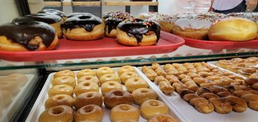 Donut Rings,Cake Donuts, Apple Fritters, Cinnamon Rolls, Cinnamon Twist, Chocolate Long Johns, Maple Long Johns, Raspberry Filled, French Cruellers, Buttermilk Bars